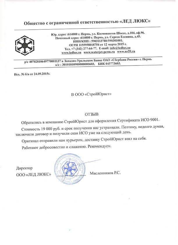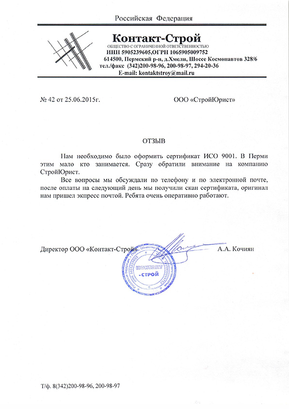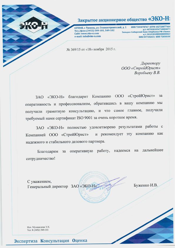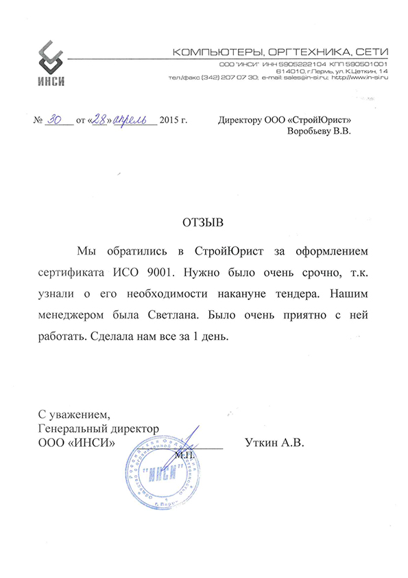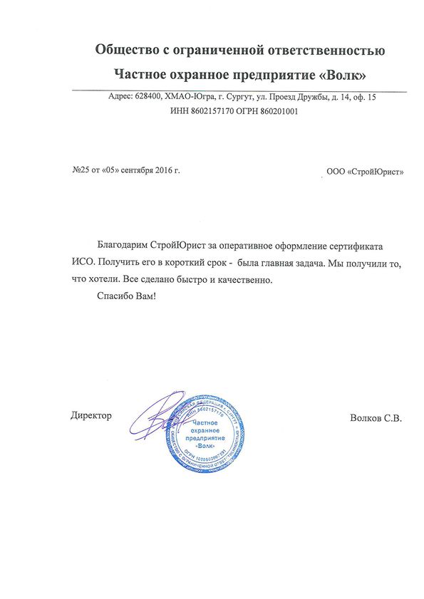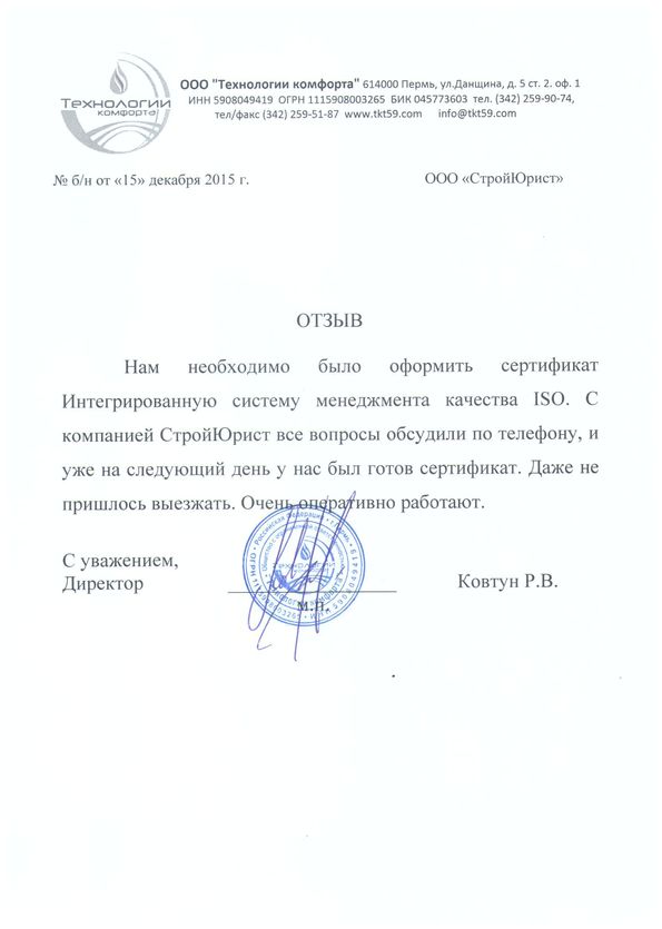 Отзывы клиентов "СтройЮрист" по ISO в Орле