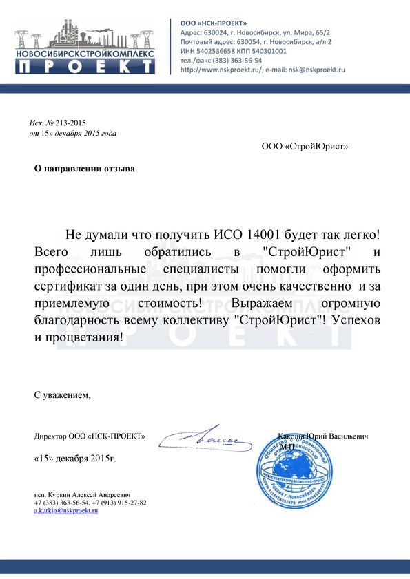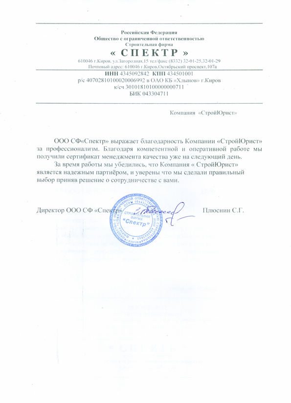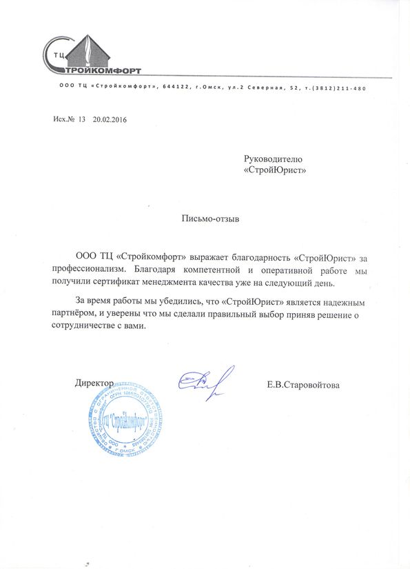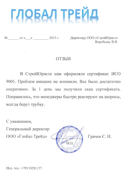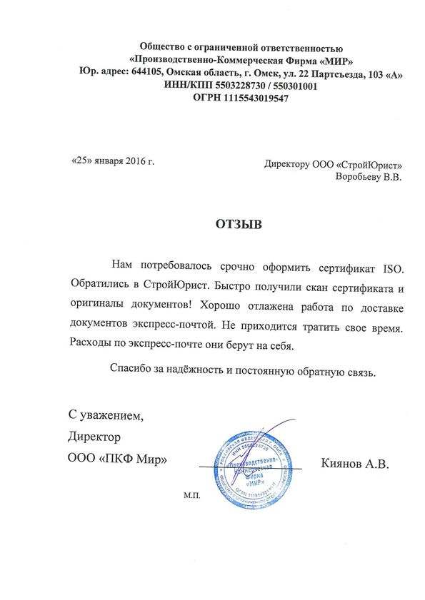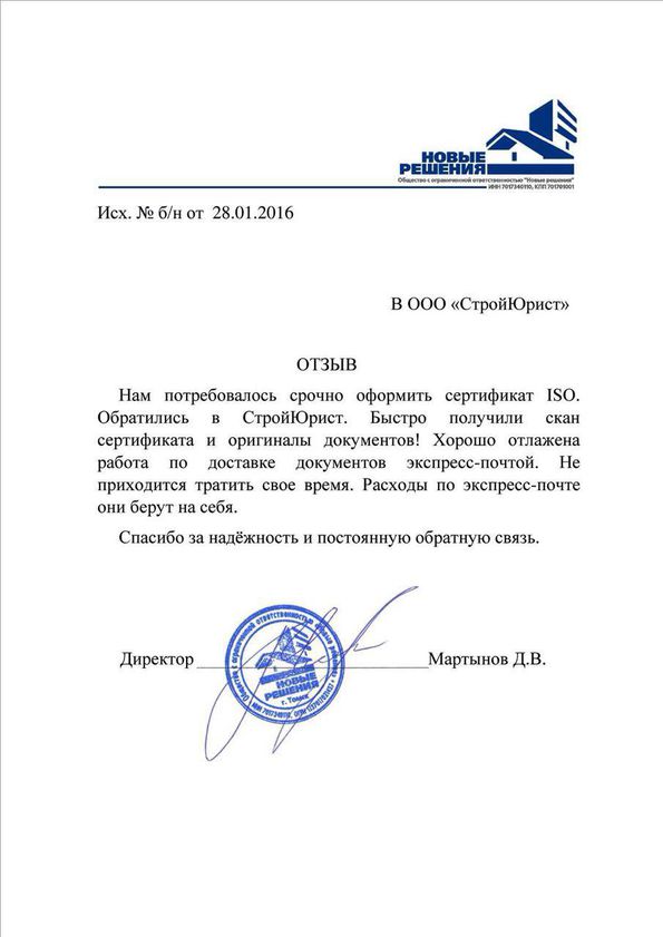 Отзывы клиентов "СтройЮрист" по ISO в Орле