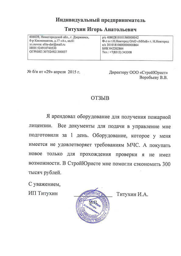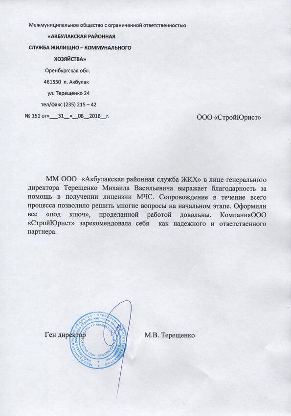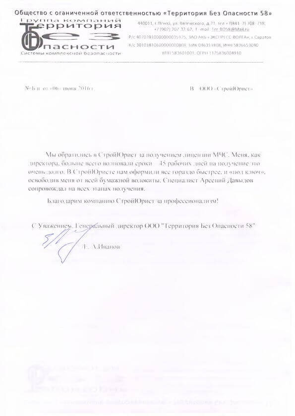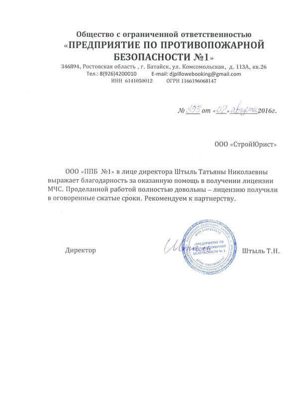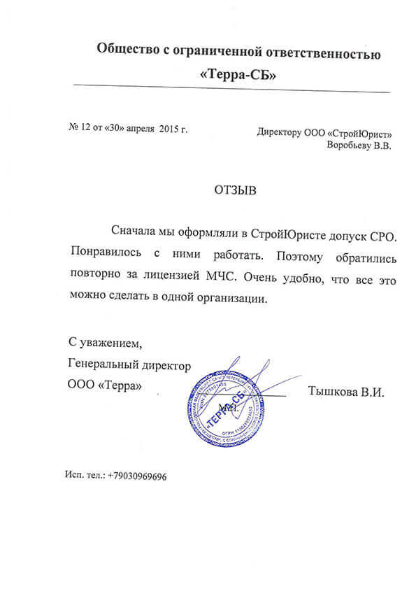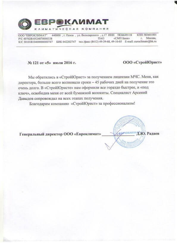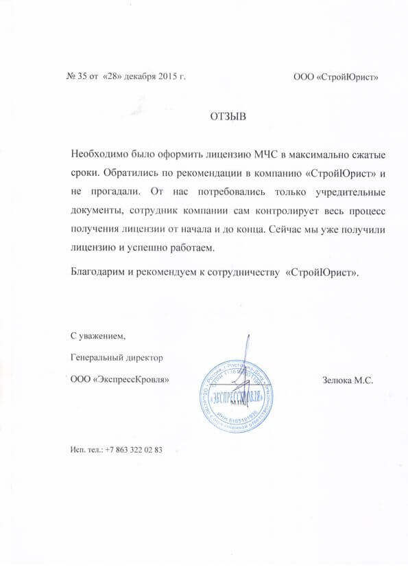 Отзывы клиентов "СтройЮрист" по лицензированию МЧС в Орле