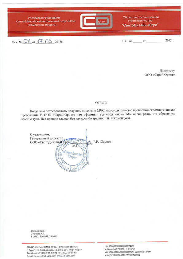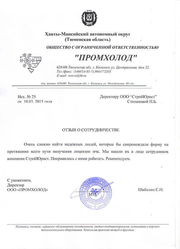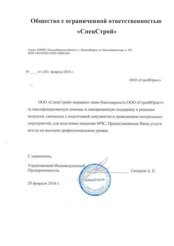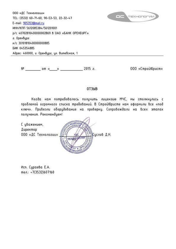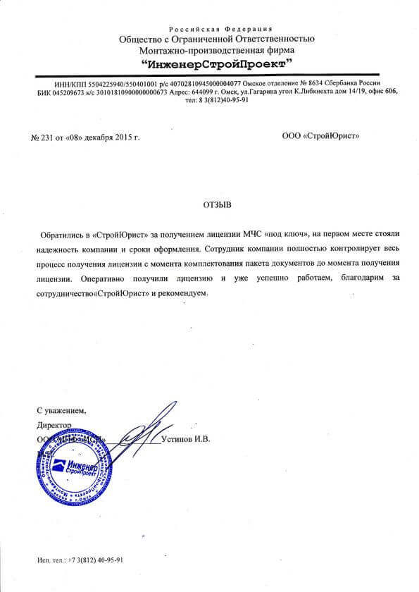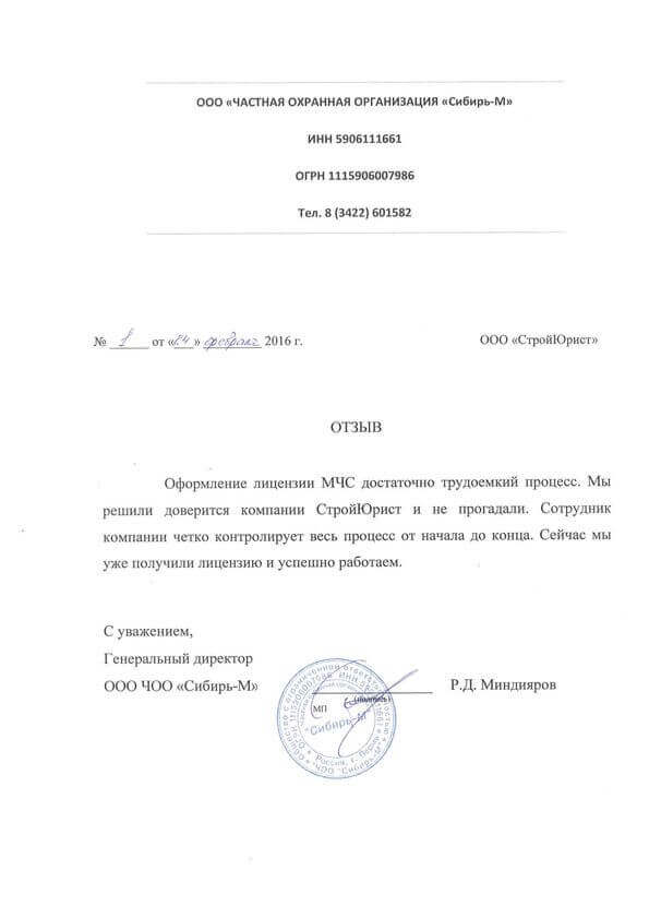 Отзывы клиентов "СтройЮрист" по лицензированию МЧС в Орле