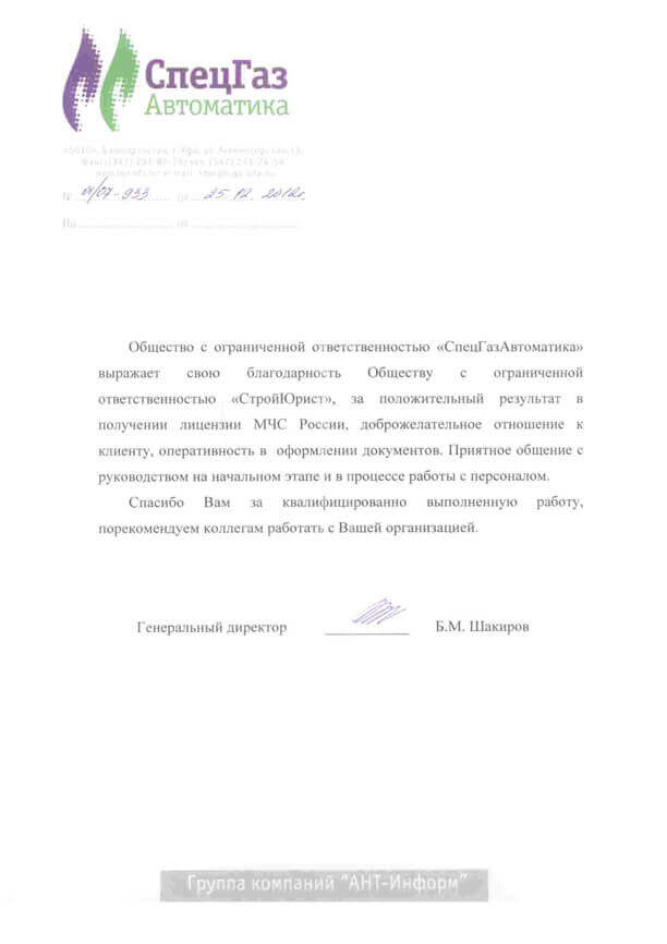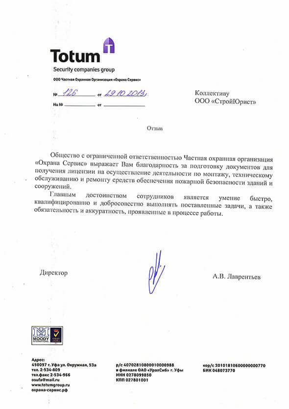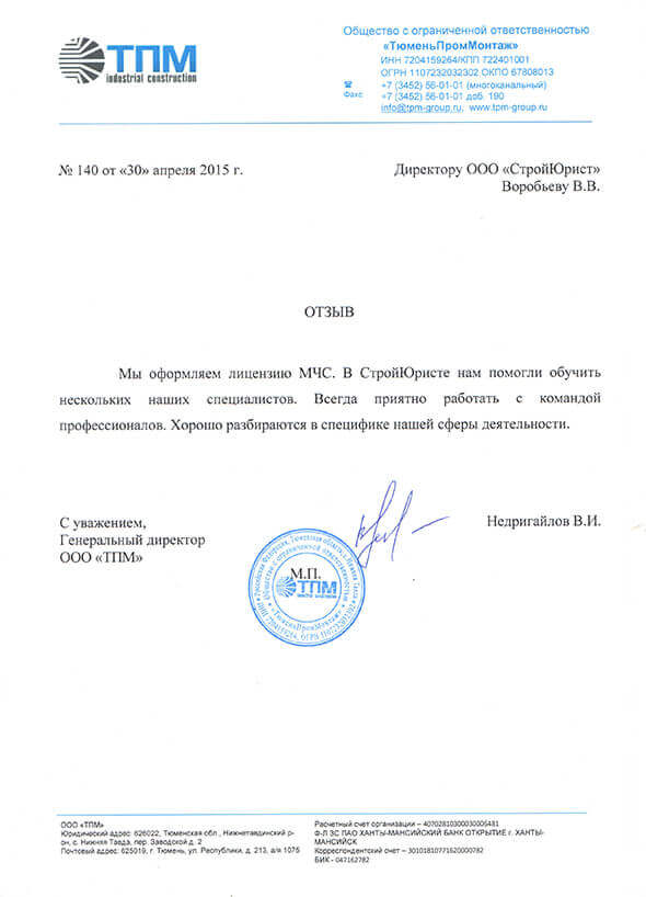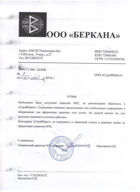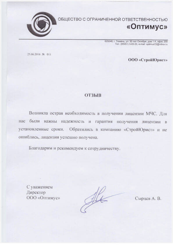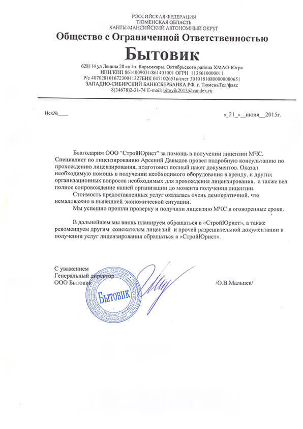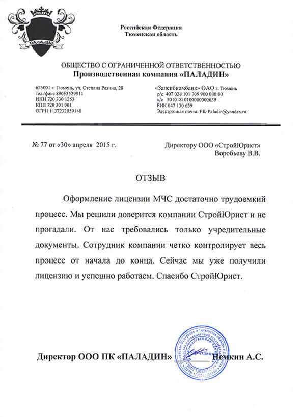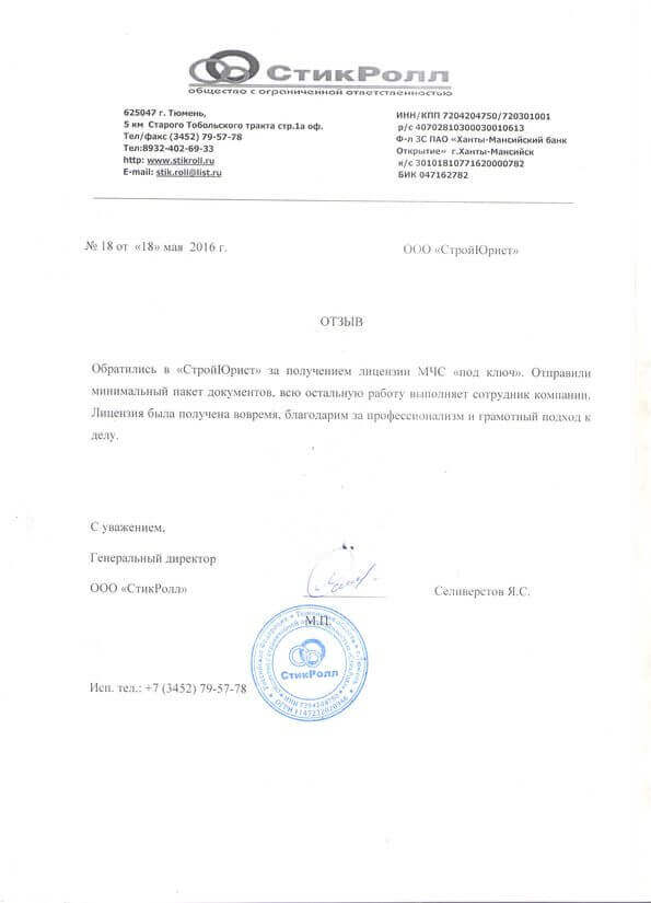 Отзывы клиентов "СтройЮрист" по лицензированию МЧС в Орле
