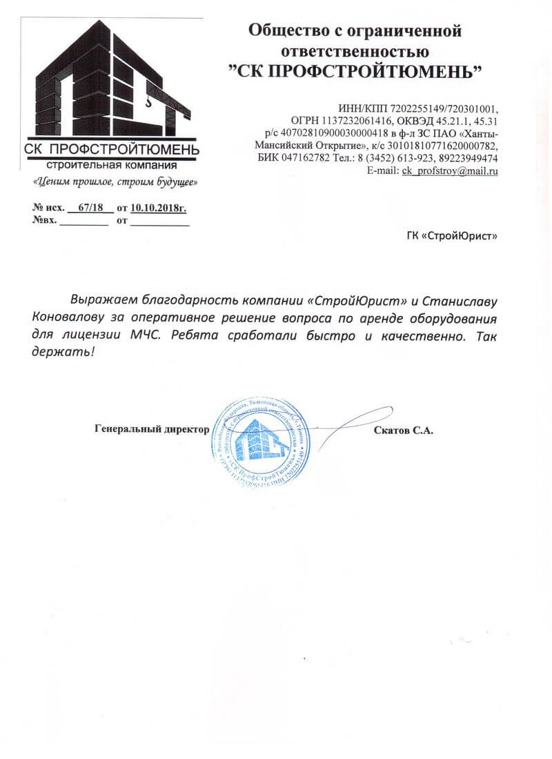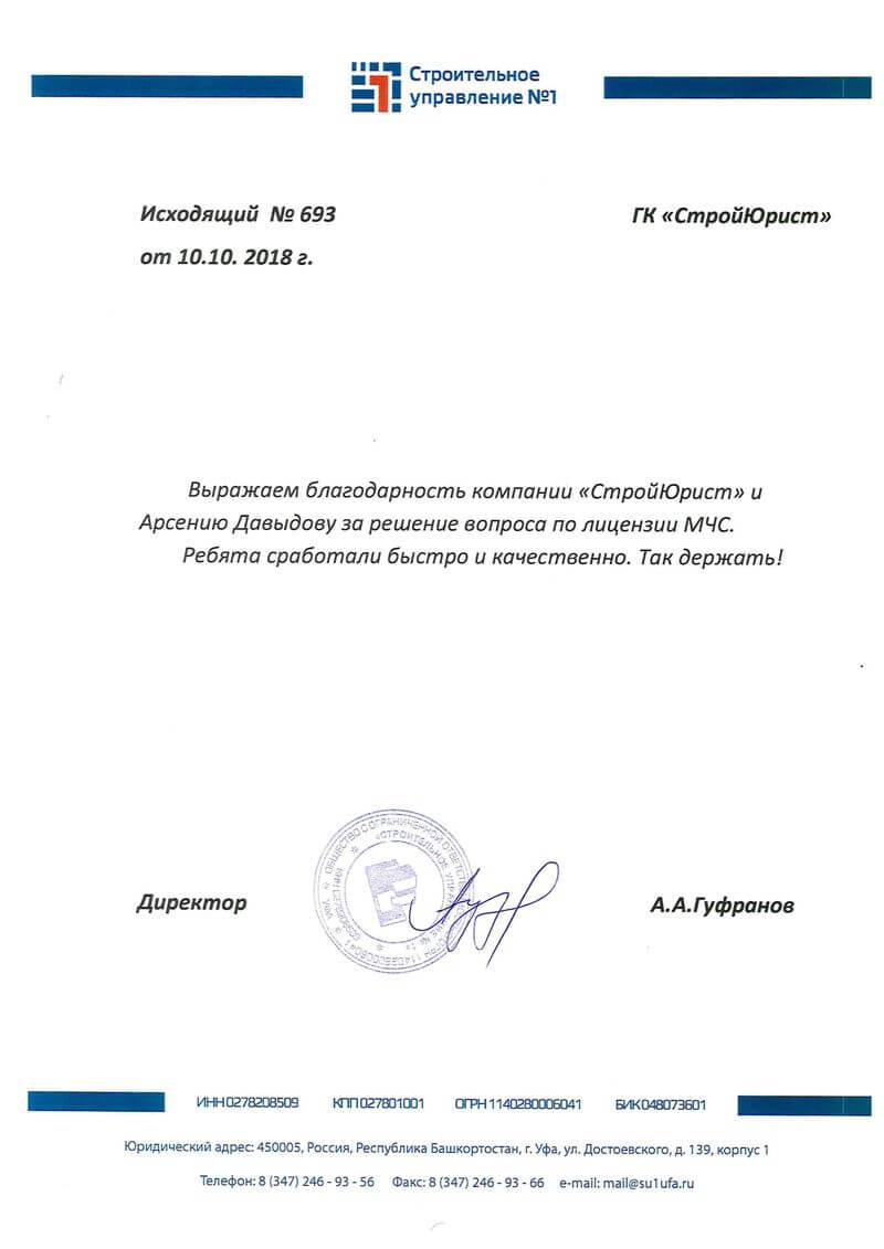 Отзывы клиентов "СтройЮрист" по лицензированию МЧС в Орле