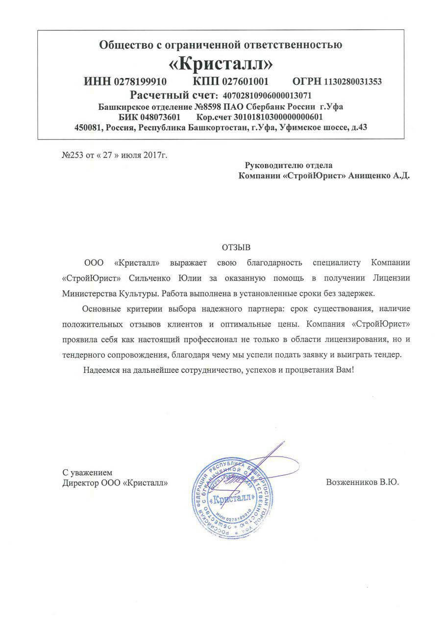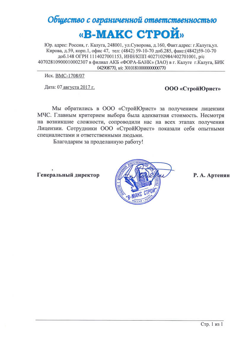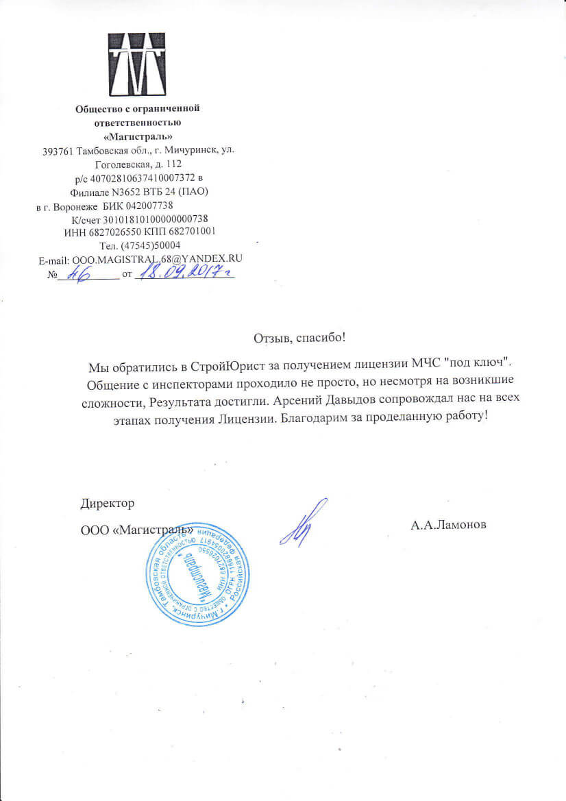 Отзывы клиентов "СтройЮрист" по лицензированию МЧС в Орле